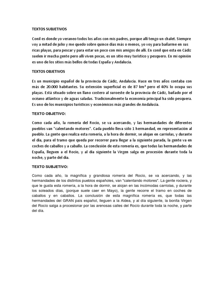 Textos objetivos y subjetivos. Por eso su objetivo puede ser convencer al lector de algo conmoverlo hacia algn sentimiento o simplemente confesarle algo ntimo y personal. Eso es lo que podemos compartir ejemplos de textos descriptivos objetivos y subjetivos. Crea y difunde informacin de forma correcta de manera online.