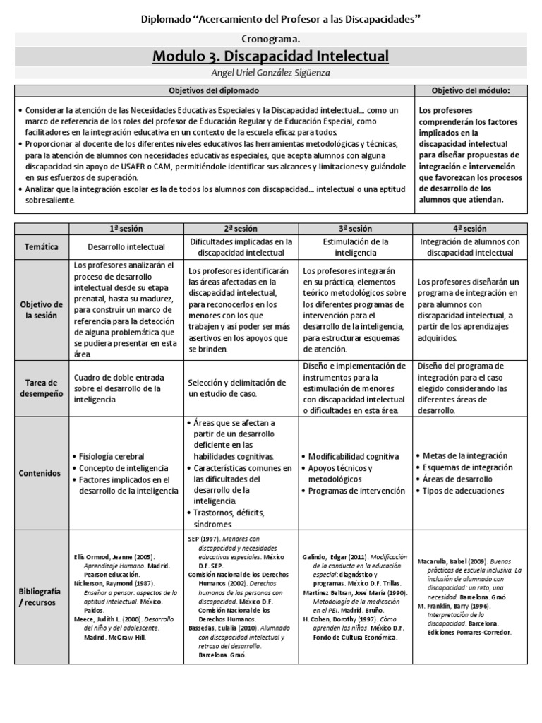 Cronograma Diplomado Miii Discapacidad Intelectual Discapacidad Intelectual Invalidez