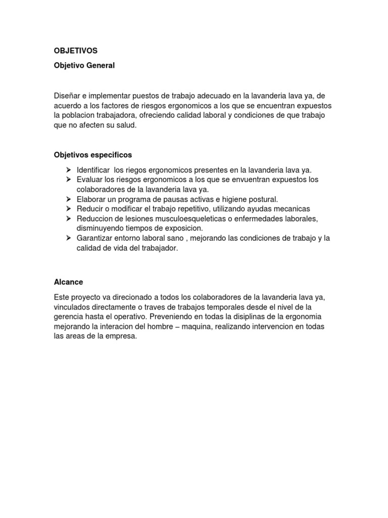 Objetivos CONCEPTO La finalidad del diseo ergonmico de los puestos de trabajo es conseguir una adaptacin satisfactoria de las condiciones de trabajo a las caractersticas fsicas y psquicas del trabajador con el objeto de salvaguardar su salud y bienestar al mismo tiempo que. Objetivos generales de la Ergonoma Reducir las lesiones y enfermedades ocupacionales Reducir los. Ergonoma en el puesto de trabajo martes febrero 25 2020 ERGONOMICOORG Ergonomia Ergonoma informtica No comments.