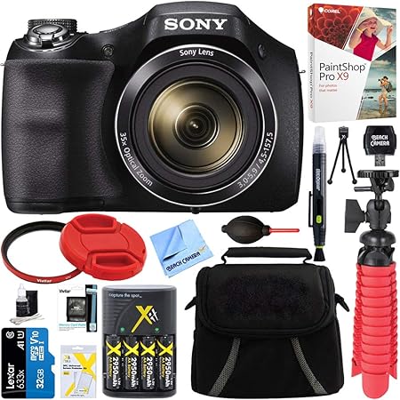 Amazon Com Sony Dsc H300 B Dsch300b H300 20 1 Mp Con Zoom Optico De 35 X Y 3 Pulgadas Lcd Sony 32 Gb Sdhc Focus Pilas Aa W Cargador Focus Funda Para Camara